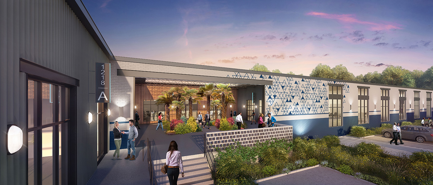 ATLANTA (March 13, 2018) –Inland Tract, a redevelopment of two mid-century warehouses into creative flex space, has broken ground and released three renderings. Built in 1964 and located at 1218 and 1236 Menlo Drive in West Midtown, the property is being leased by Wilson, Hull & Neal and developed by partners Third & Urban and Granite Properties. Slated to open in fall 2018, the $16M project will deliver 77,487 square feet of office and warehouse environments to a wide range of businesses.